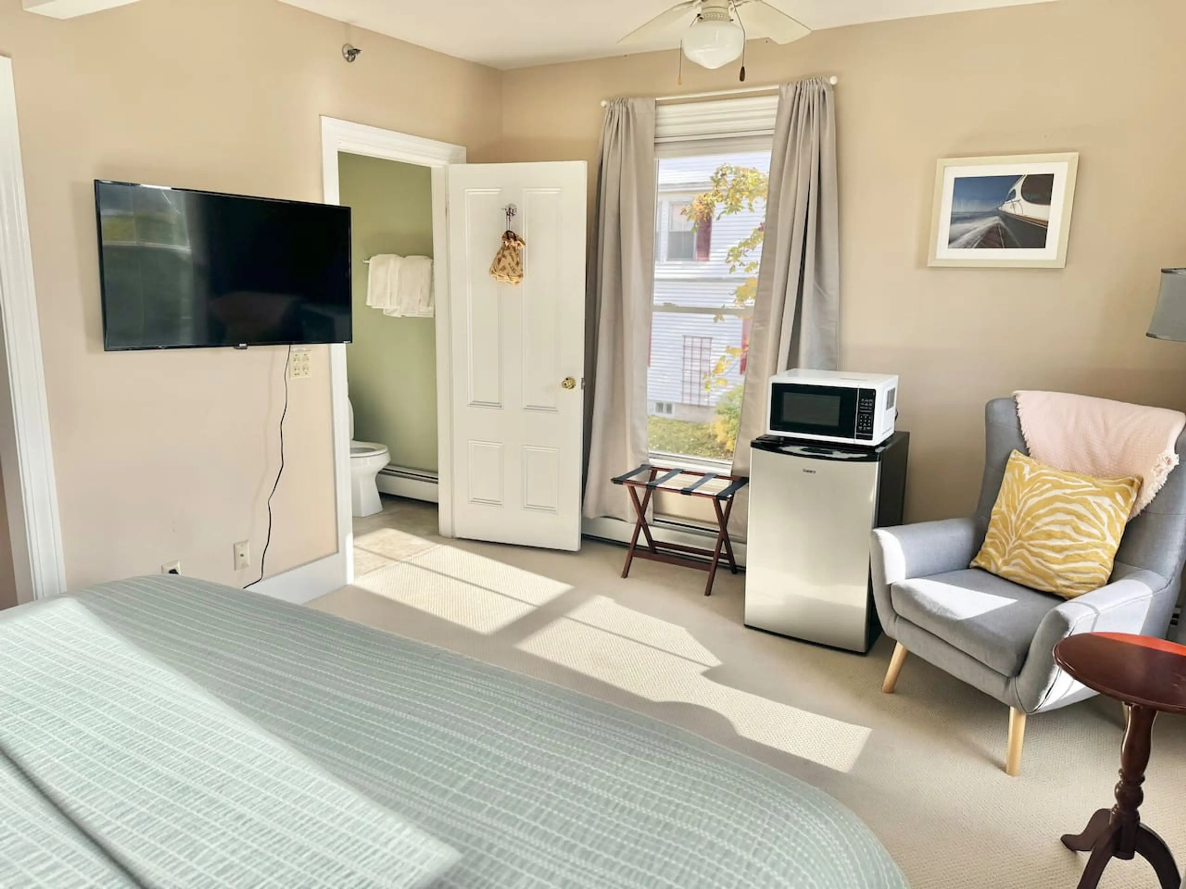 Soak in the beauty of the Maine coast from your private harbor view suite on the quiet side of Mount Desert Island. Perched on the second floor of our charming Inn, this bright and inviting suite offers stunning views of the harbor, king size bed, a cozy private eating nook, private bath and access ...